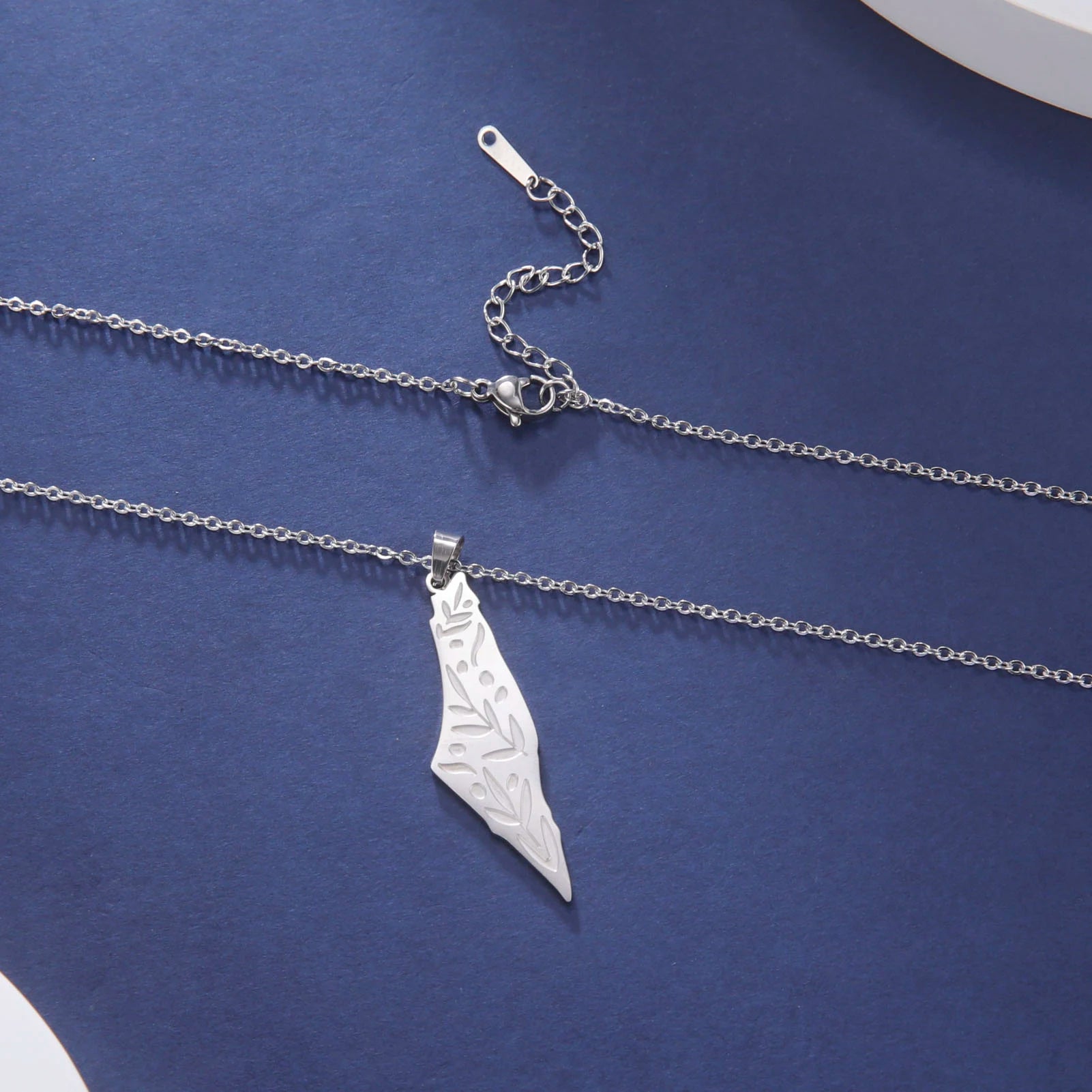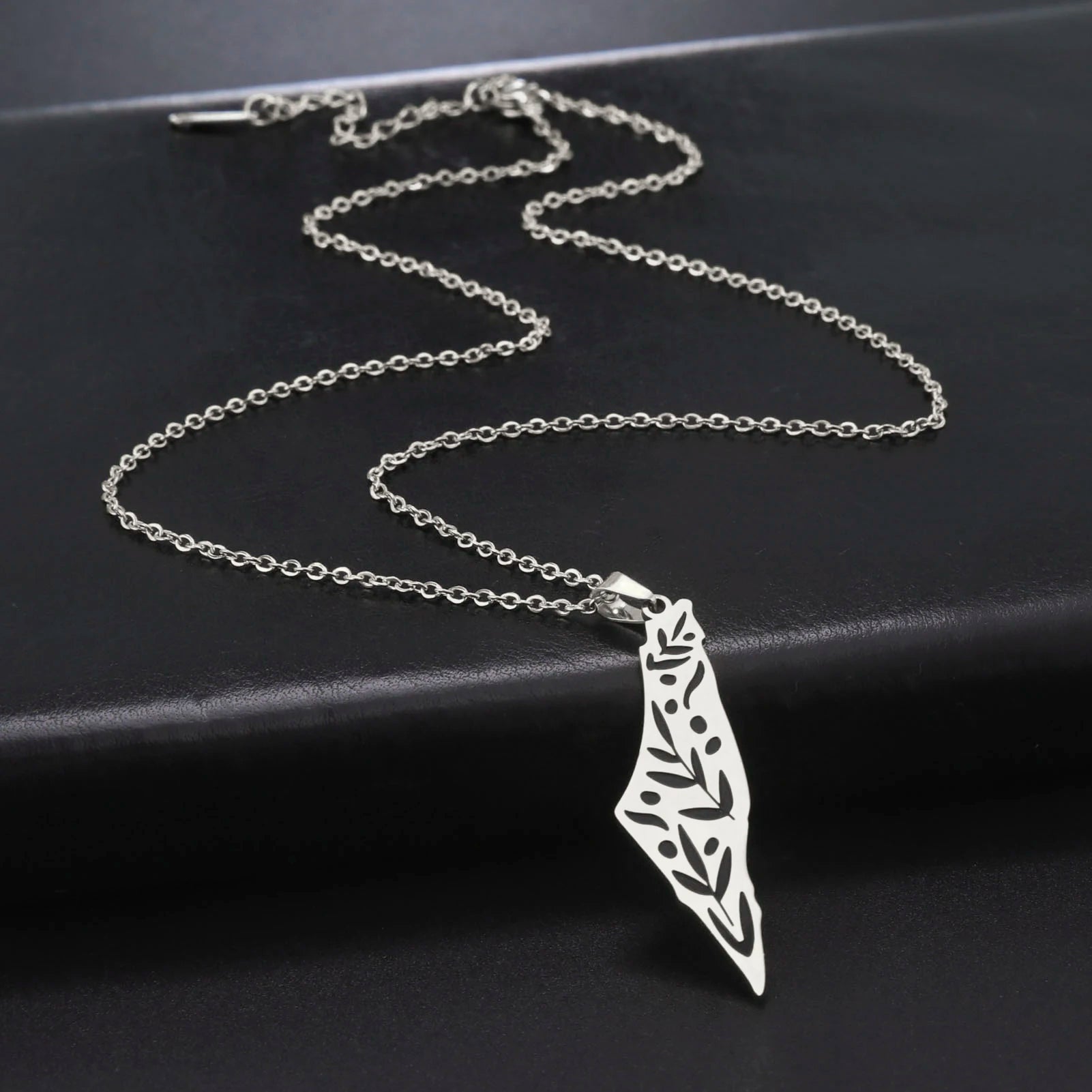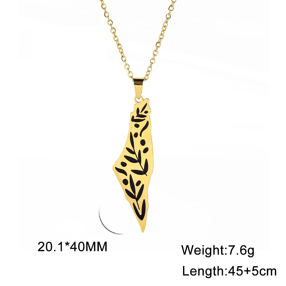 Olive Branch Harmony: Stainless Steel Palestine Map Pendant Necklace