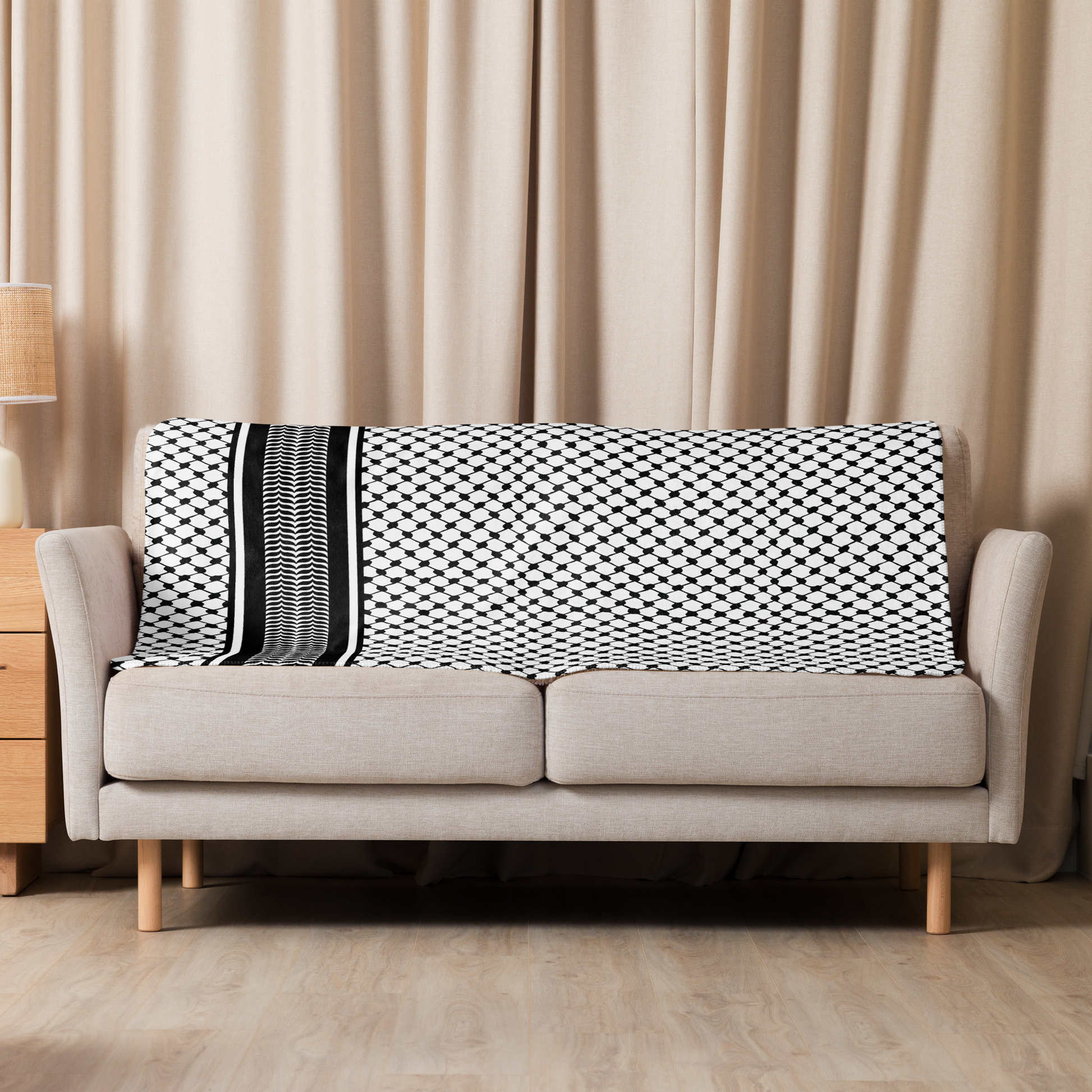 Experience ultimate comfort with our Sherpa Blanket in the Palestinian Keffiyeh Solidarity Edition. This exquisite blanket combines a plush feel with exceptional softness, making it your perfect comfort companion. Whether you're lounging on the couch, snuggling up on chilly evenings, or adding a stylish touch to your room, this blanket offers unmatched coziness and warmth. Show your solidarity with Palestine while enjoying the luxurious feel of this unique sherpa blanket.