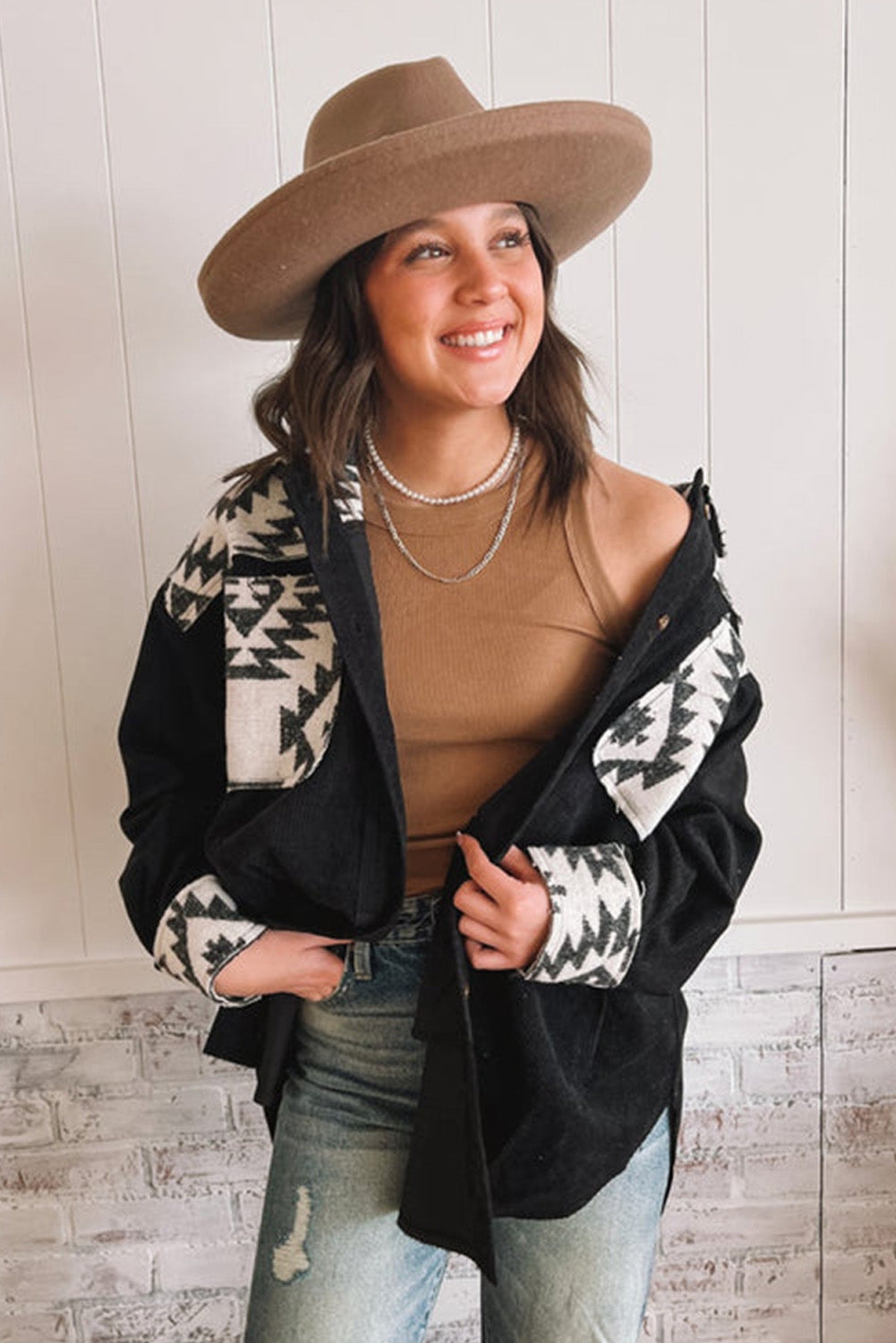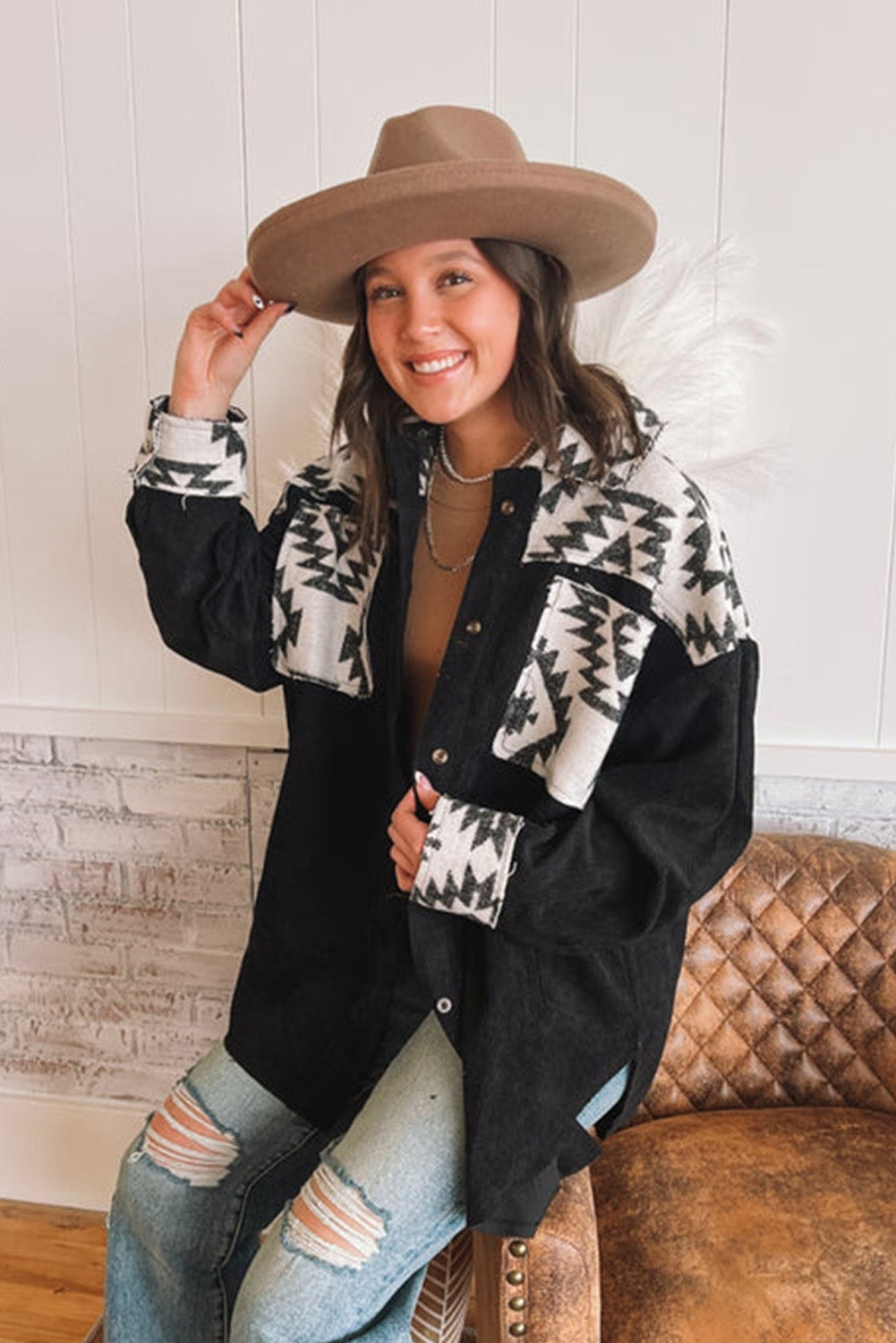 - This shacket exudes a trendy and unique style with its eye-catching Aztec pattern