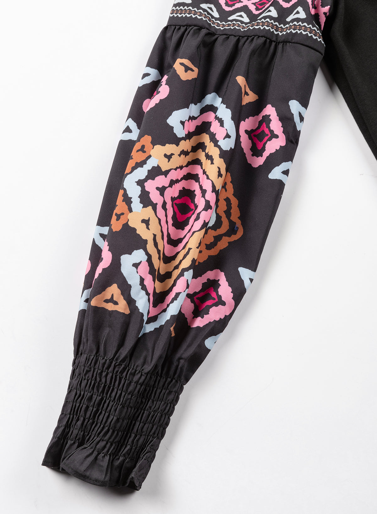 Midnight Oasis Balloon Sleeve Crew Neck Blouse