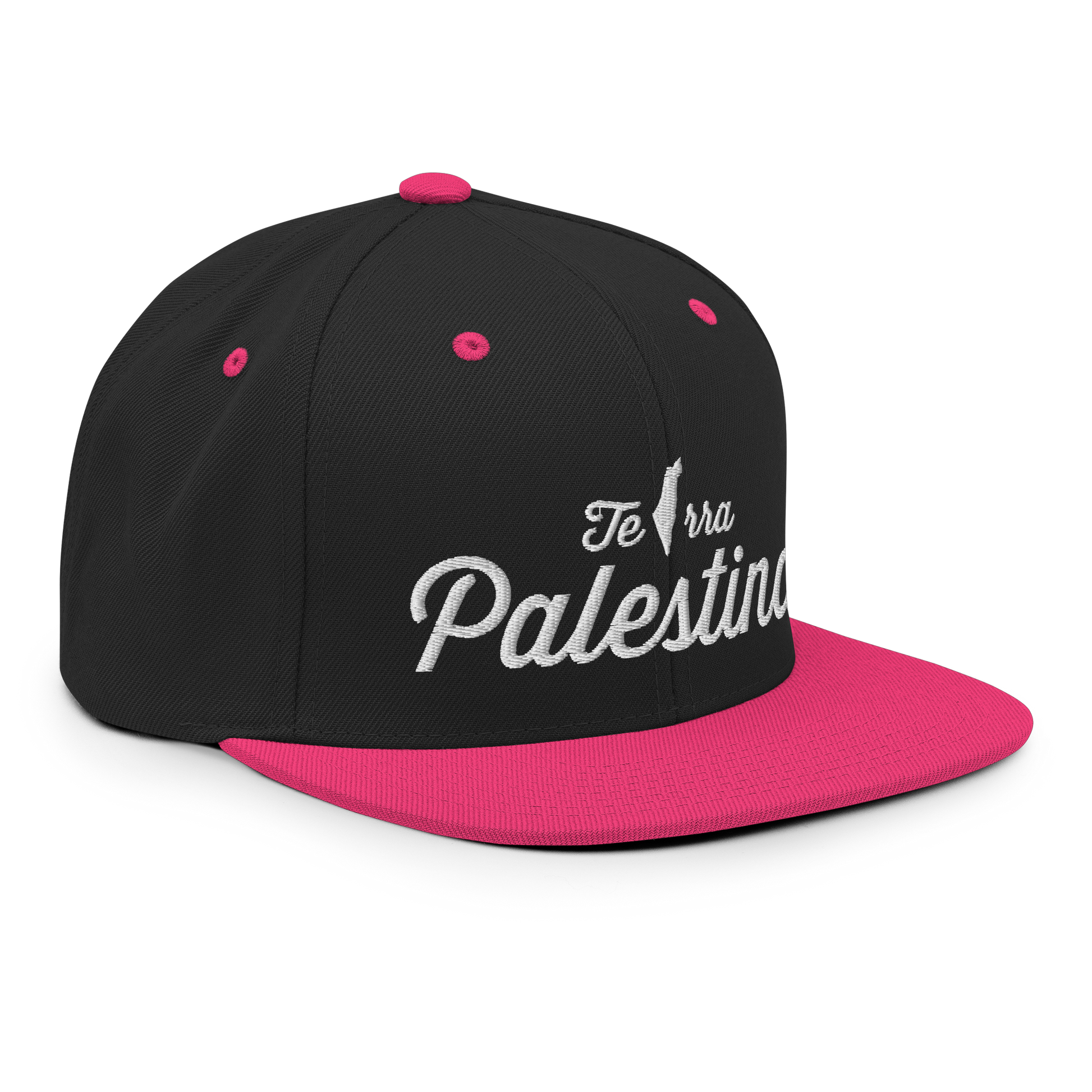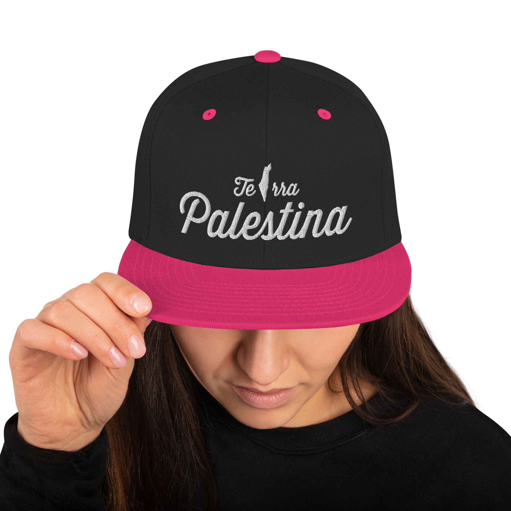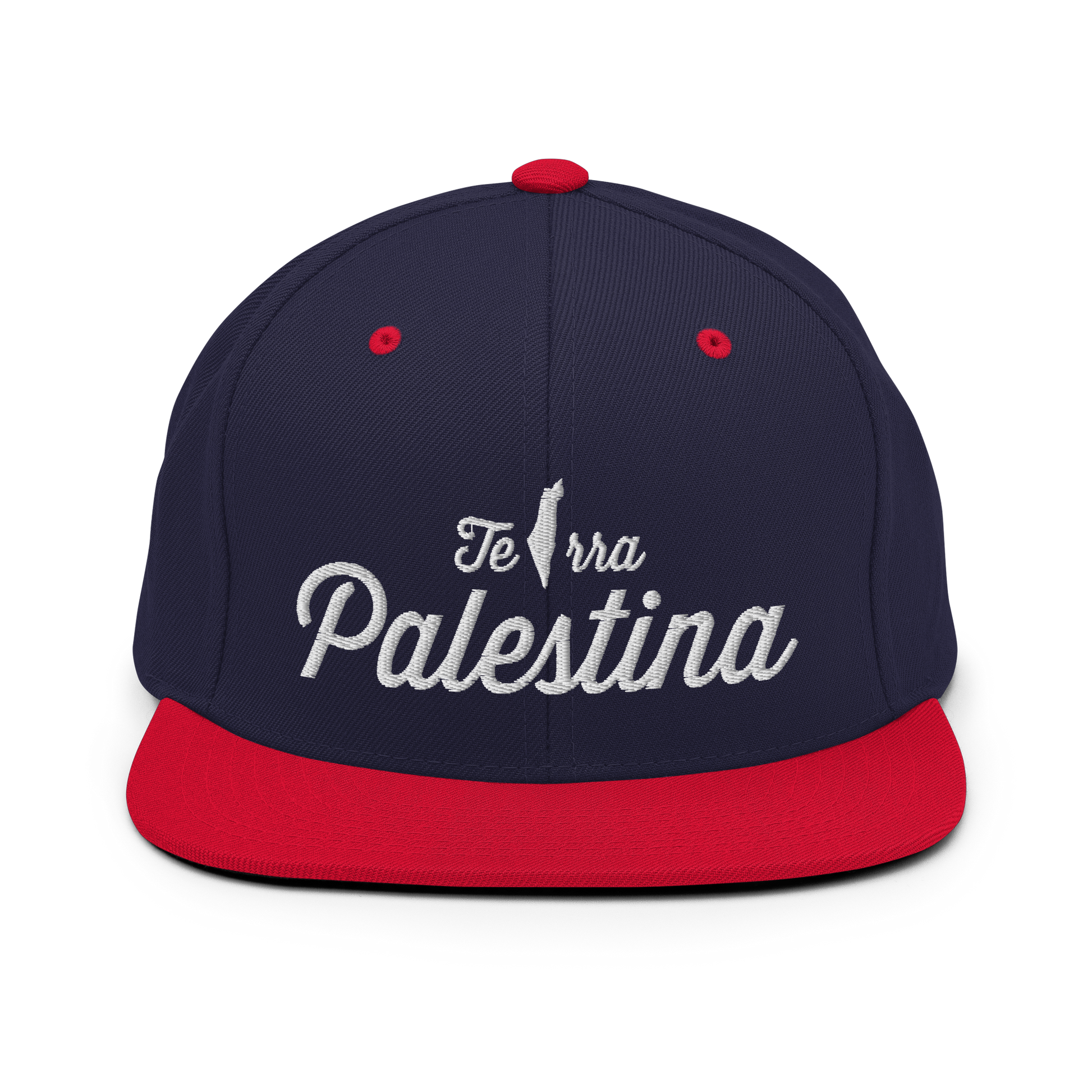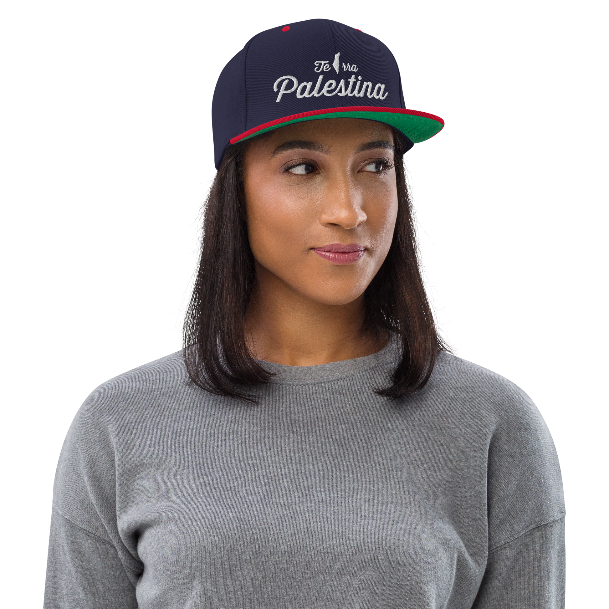 Step into the spotlight with our 'Terra Palestina Snapback Hat, where tradition meets contemporary flair. Crafted with care and boasting striking embroidery, this hat is more than just an accessory – it's a statement piece. Its classic fit, flat brim, and full buckram structure exude timeless charm, while the adjustable snap closure ensures a personalized, comfortable fit for everyone. Embrace the fusion of culture and style, and make every outing an opportunity to showcase your individuality.