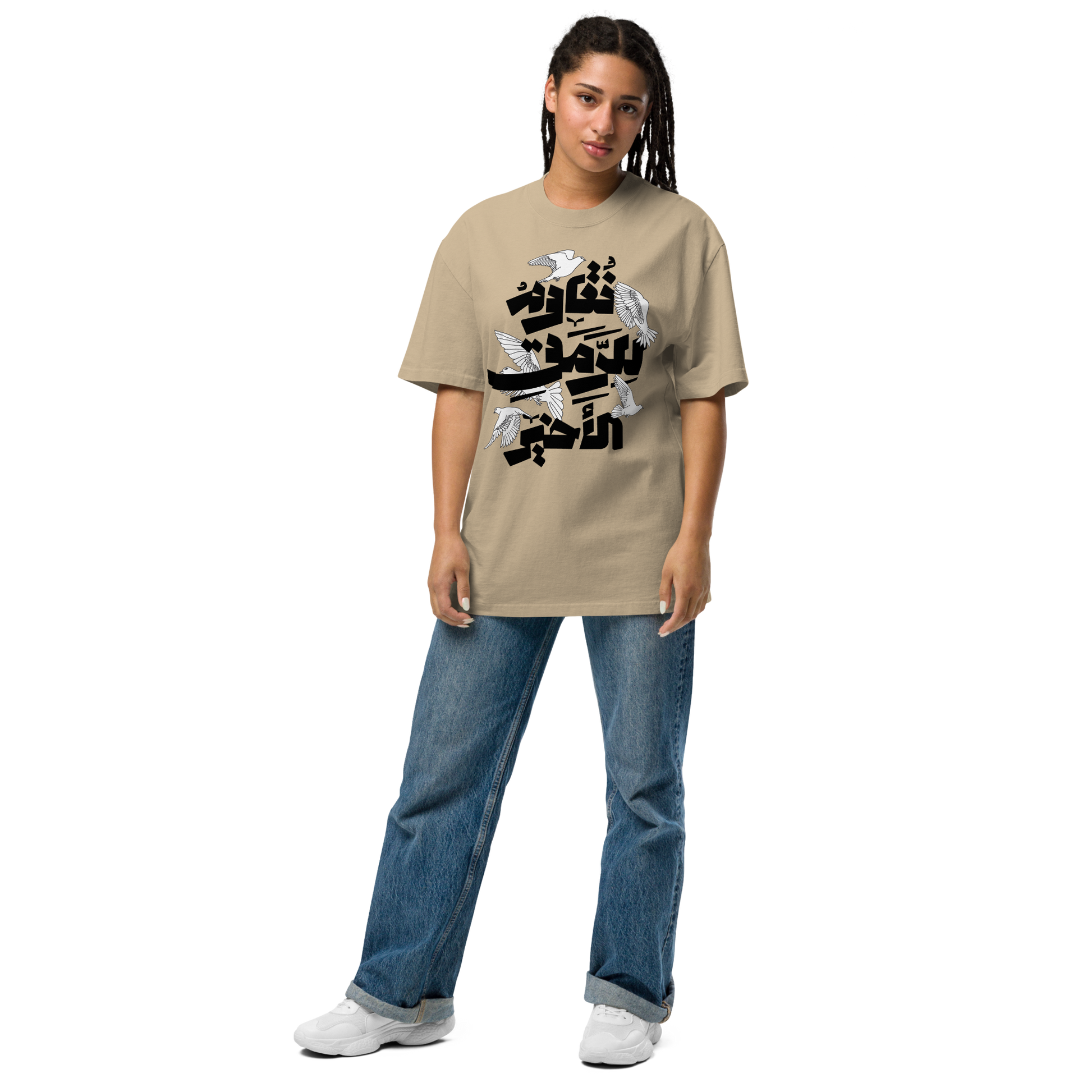 Until the last breath (نقاوم للرمق الأخير) let the spirit of solidarity echo boldly as you wear our Palestine Solidarity Printed Hoodie, complemented by the versatile Oversized Faded T-Shirt.