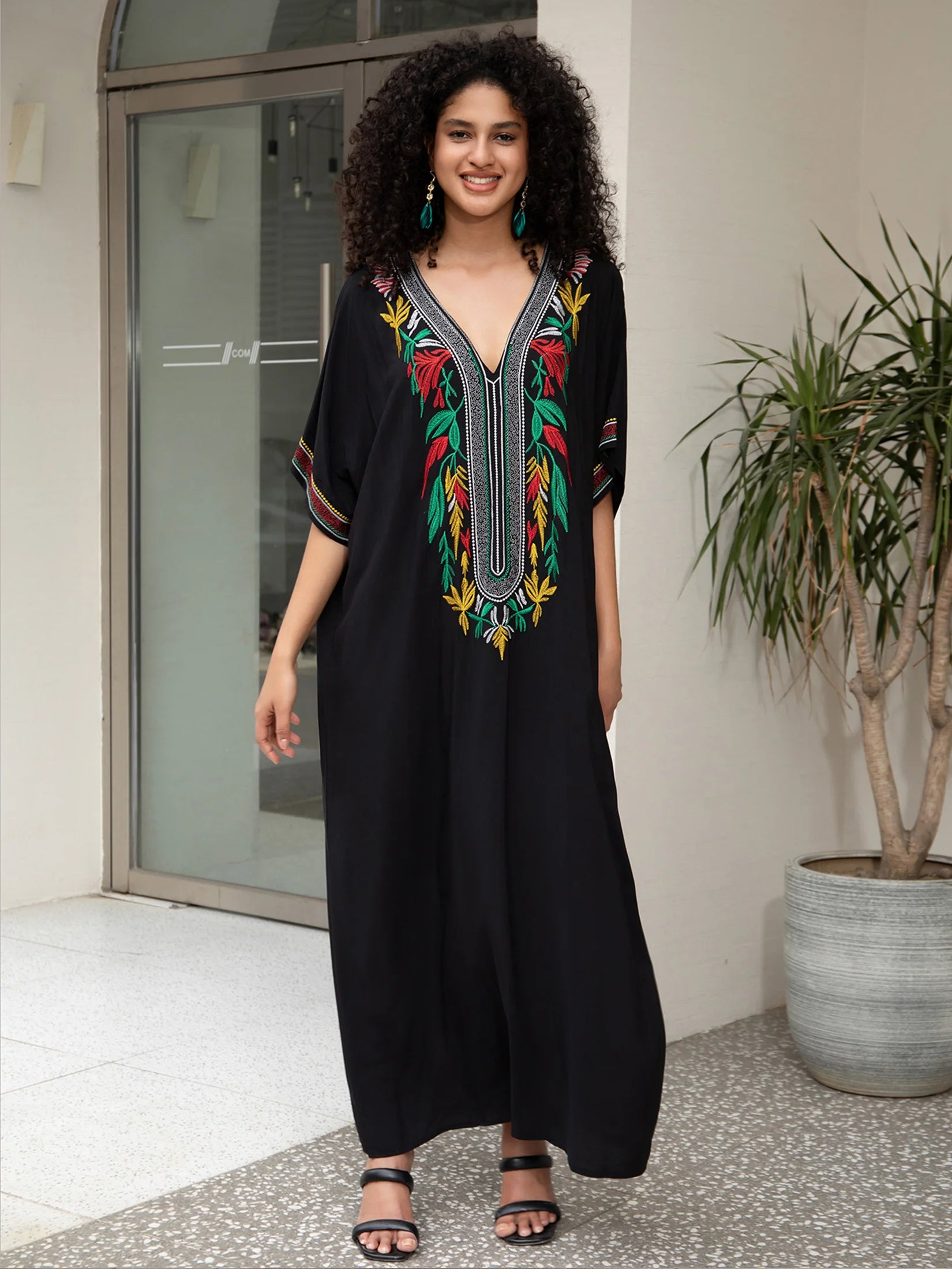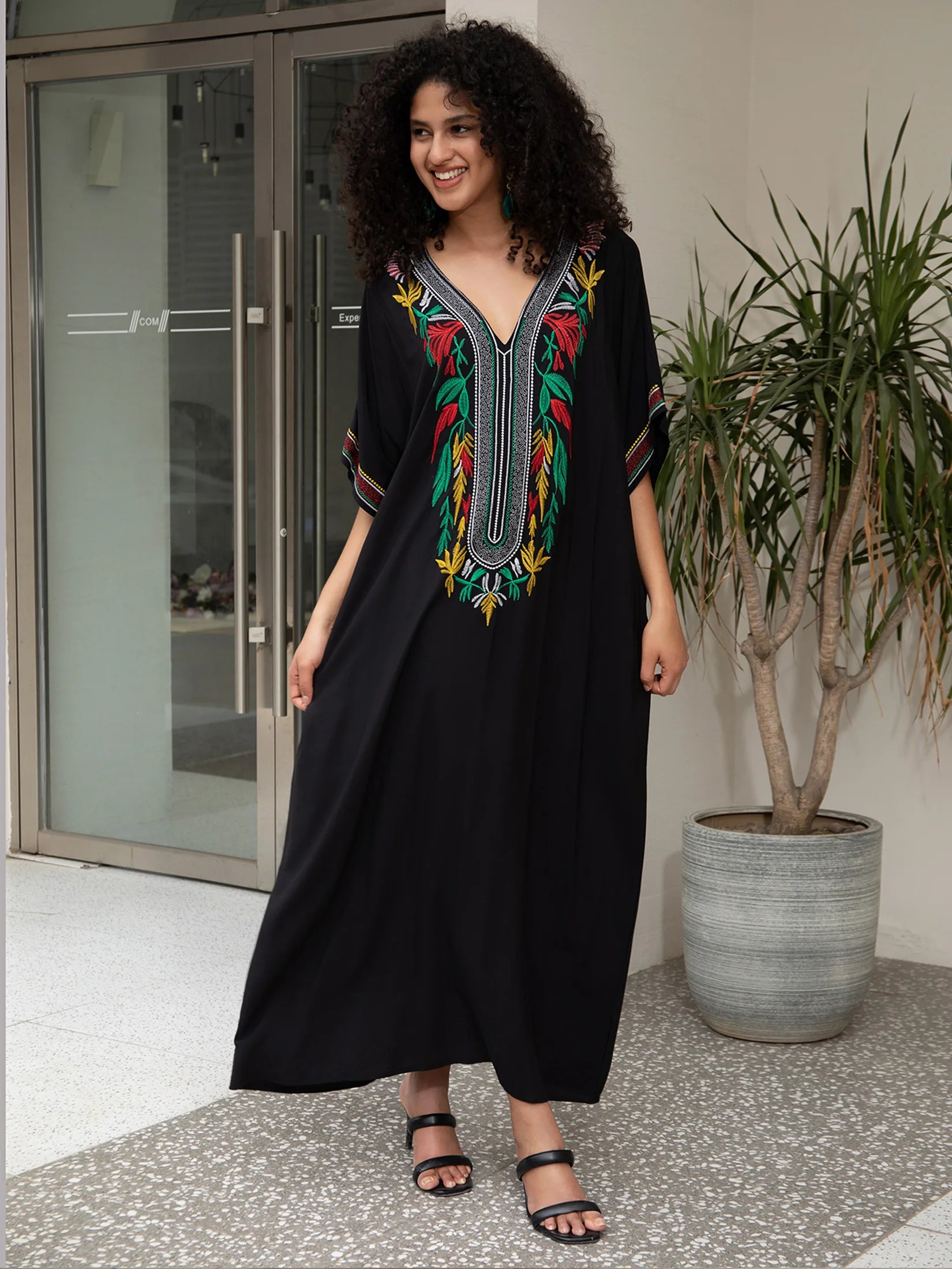Tripoli Midnight - Light Embroidered Kaftan (coverup)